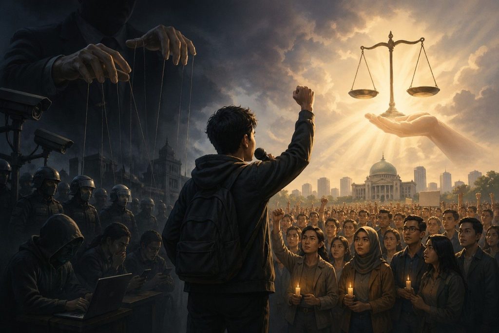 Kebebasan menyampaikan pendapat merupakan pilar penting dalam kehidupan sosial dan bernegara karena menjadi sarana bagi masyarakat untuk menyampaikan kritik, aspirasi, dan gagasan demi terwujudnya keadilan. Namun, realitas saat ini menunjukkan bahwa semakin banyak masyarakat memilih diam karena risiko yang muncul ketika menyuarakan kritik terhadap kezaliman penguasa, mulai dari pelaporan hukum, intimidasi oleh pihak tertentu, hingga pembocoran data pribadi yang berujung pada perundungan di ruang digital. Kondisi ini menyebabkan ruang publik kehilangan fungsi dialog yang sehat dan membuat ketidakadilan kerap dibiarkan tanpa koreksi.