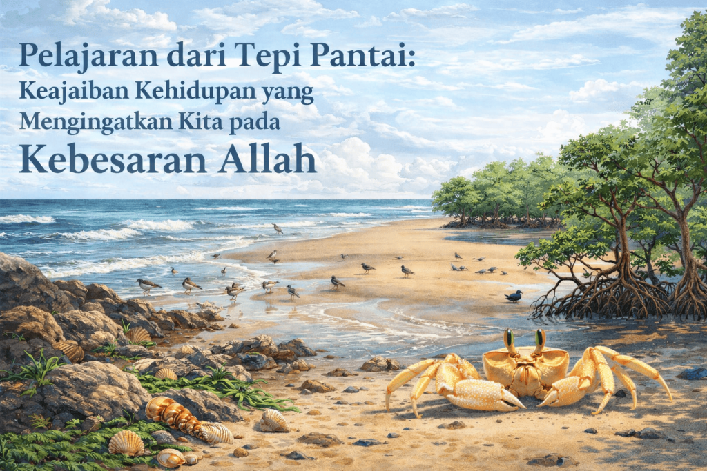Pantai sering kali dipandang hanya sebagai tempat rekreasi, hamparan pasir, debur ombak, dan angin laut yang menenangkan. Namun, jika kita memperhatikan lebih dekat kehidupan di tepi pantai, kita akan menemukan dunia kecil yang penuh dengan keajaiban. Berbagai makhluk hidup seperti kepiting, kerang, siput laut, hingga burung pantai hidup dan beradaptasi di lingkungan yang tampak keras. Fenomena ini bukan sekadar bagian dari ekosistem alam, tetapi juga menjadi tanda kebesaran Sang Pencipta.